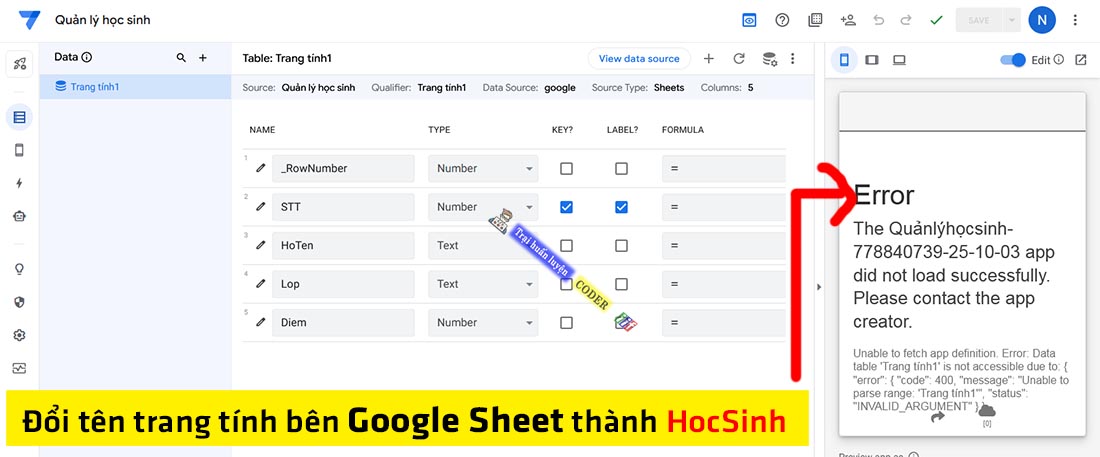 Hướng dẫn xử lý một số lỗi hay gặp với App Sheet tạo ứng dụng di động trong quản lý
