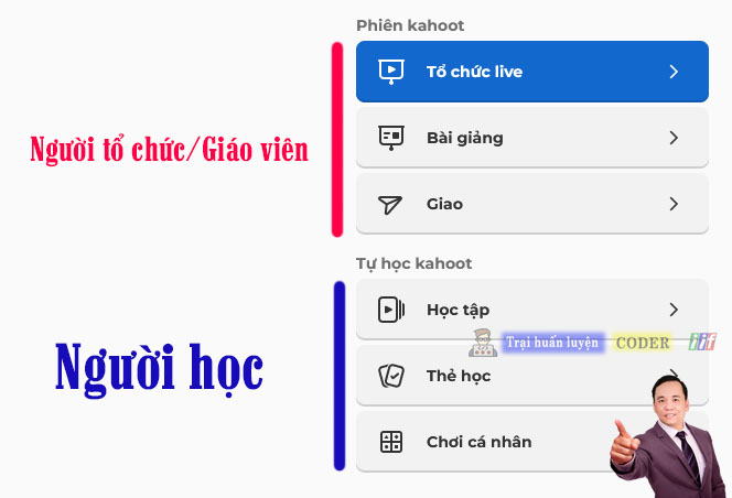 Phiên Kahoot: dành cho giáo viên, người dẫn.